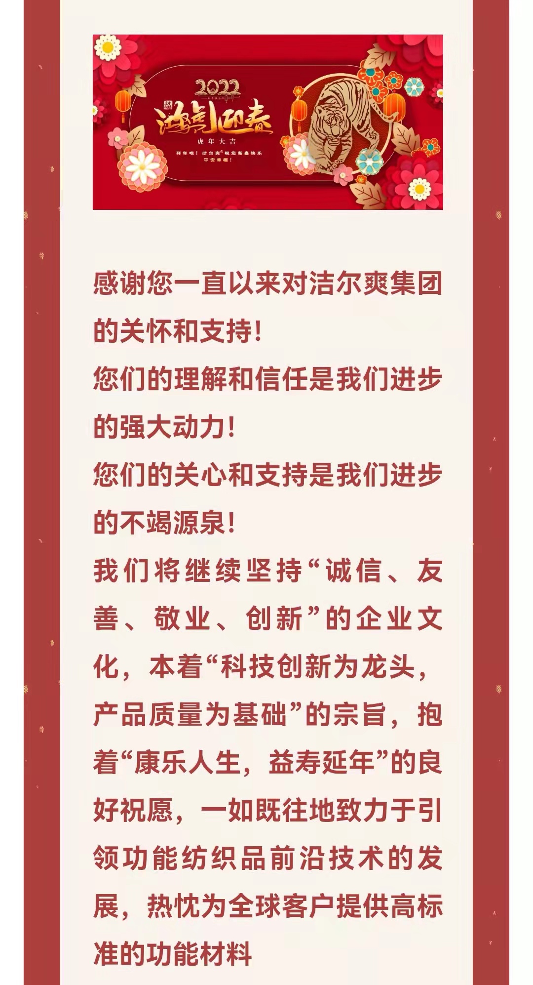 喜迎2022,潔爾爽®祝您春節快樂,健康幸福!